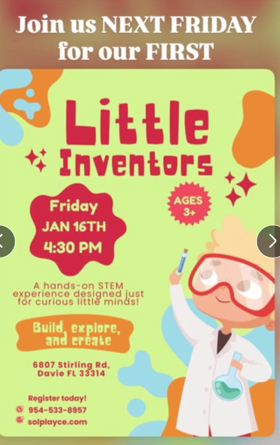 A hands-on STEM experience designed just for curious little minds! Build, explore, and create.