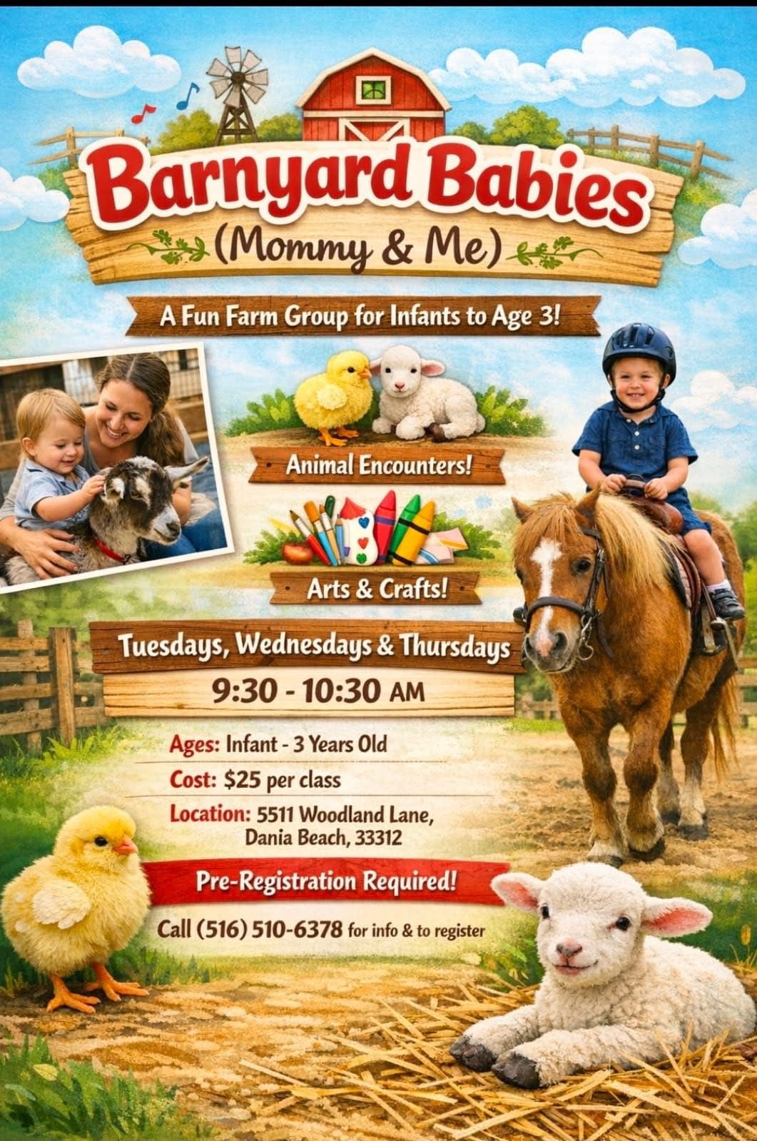 A Fun Farm Group for Infants to Age 3! Features Animal Encounters and Arts & Crafts.