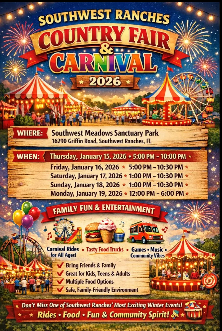 Family Fun & Entertainment including Carnival Rides for All Ages, Tasty Food Trucks, Games, Music, and Community Vibes. Bring Friends & Family, Great for Kids, Teens & Adults, Multiple Food Options, Safe, Family-Friendly Environment.